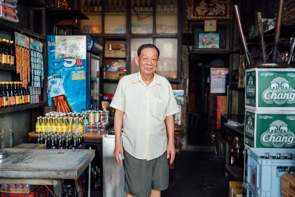 Tai Sae started as a grocery store serving the local Chinese population. It is a very classic Bangkok neighbourhood mom-and-pop shophouse store that has remained unchanged since it started, frozen in time, but with a loyal client base. Uncle Tai Sea is in his golden years. His parents moved to Bang Rak almost 100 years ago. Like the other Chinese immigrants, they came by boat and worked as merchants for a living before opening this store.