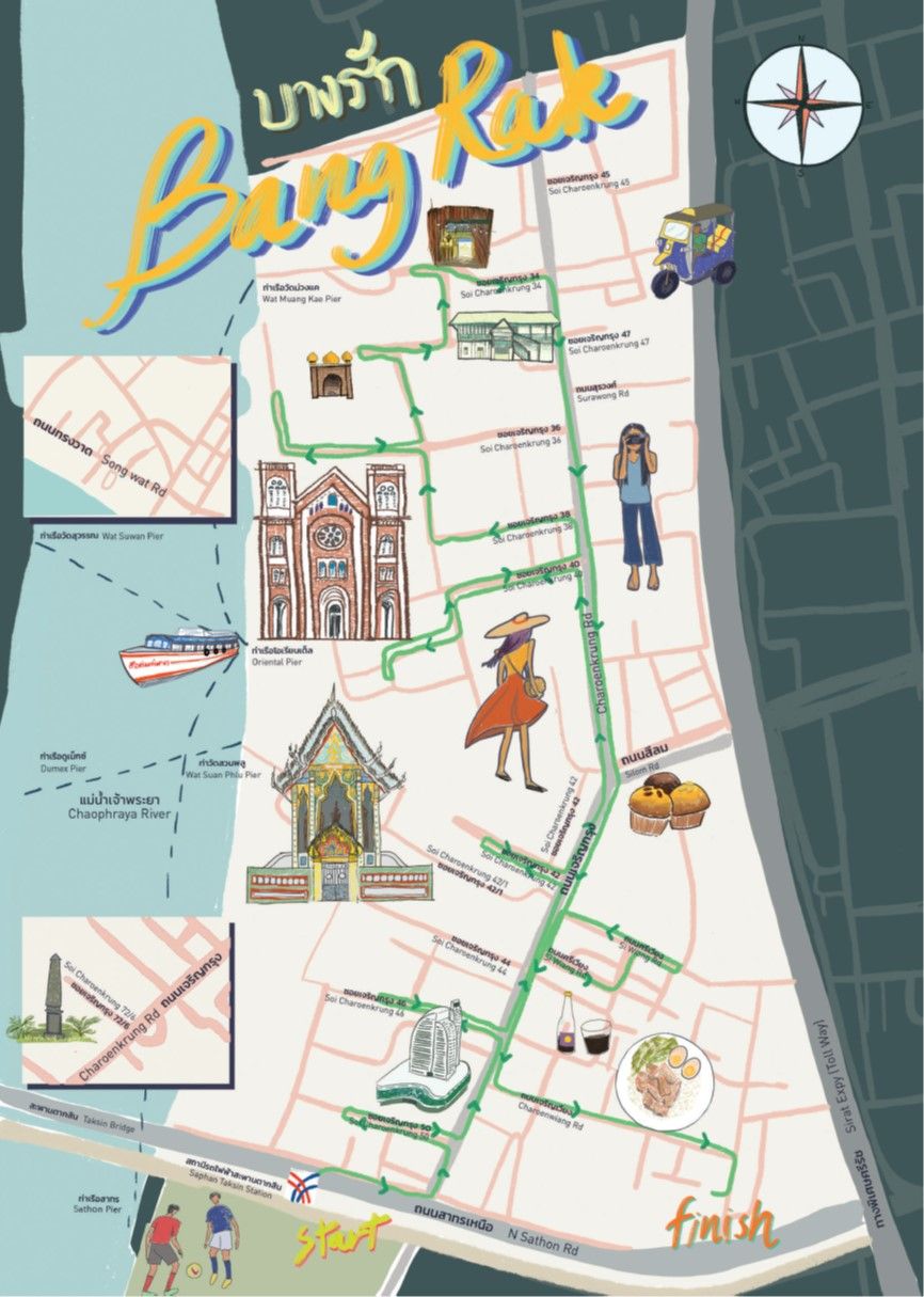 This food trail has been created by Urban Studies Lab, and comes with an illustrated map designed by the talented Nichapat Sanunsilp. The result of an inclusive cultural mapping project at the occasion of the Bangkok Design Week 2020 with the objective to support local businesses and keep heritage alive in this historic neighbourhood. We are grateful for the financial support of the US Embassy in Thailand.