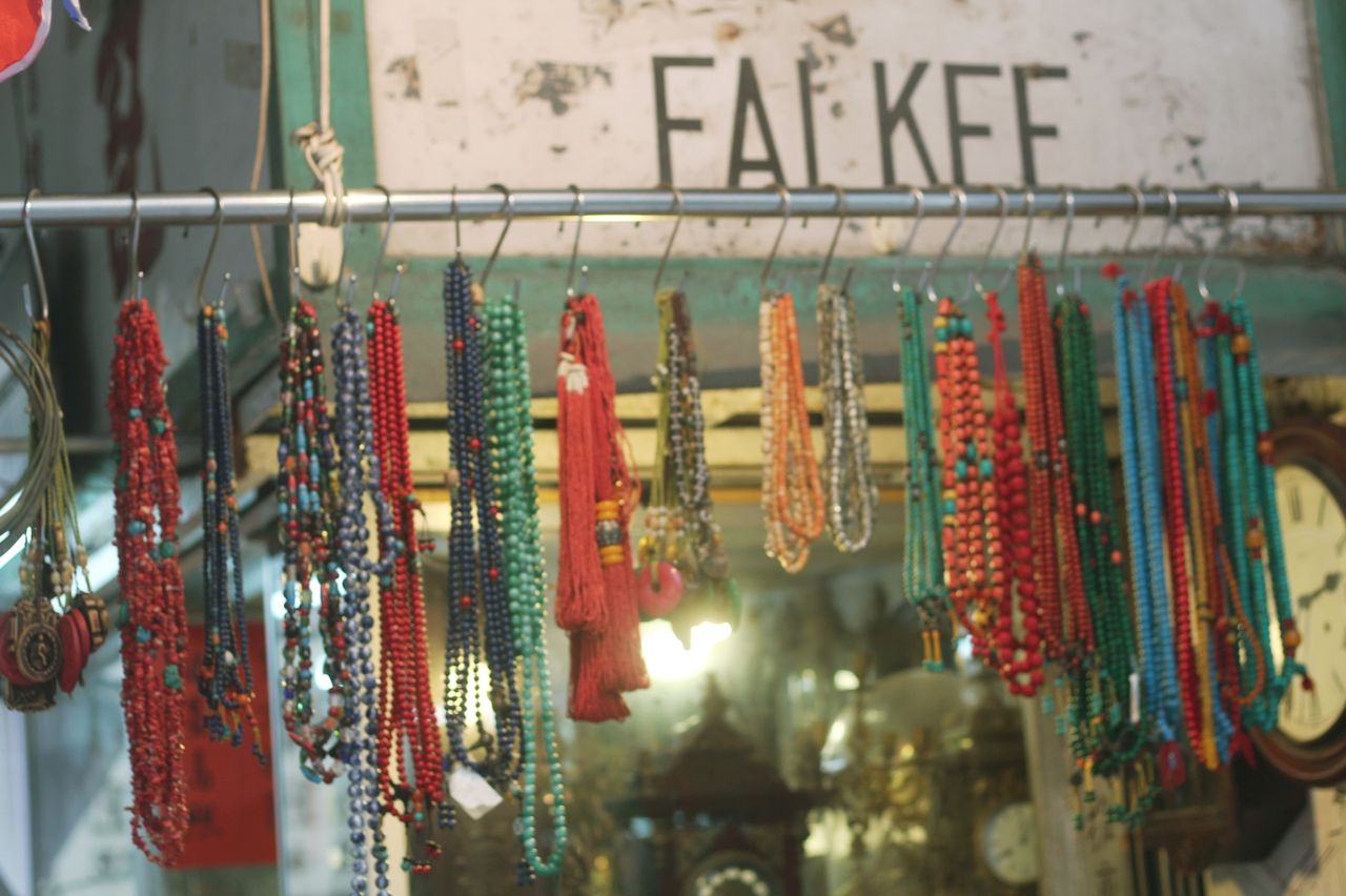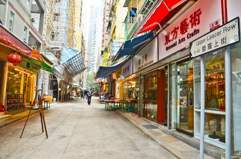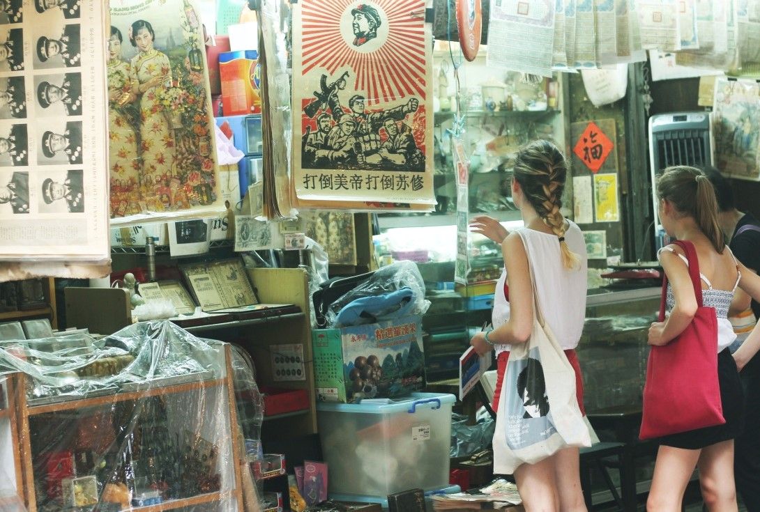 After the sombre and retrospective silence at Pak Sing Temple, we wound our way to the cheerfully captivating Upper Lascar Row 摩羅上街, also known as Cat Street. It’s always been and still is a ‘flea market’. Those who bought stolen goods from thieves (rats) were known as cats in Cantonese, hence the name. Cat Street is a trinkets lover’s treasure trove: anything from porcelain bowls to Chinese paintings, Mao memorabilia, Bruce Lee posters and jade jewellery. We were fortunate – because it was forecast to rain, it was almost completely silent on the otherwise busy market street and it was quite relaxing to look at what was on offer without being jostled in a crowd or hassled by shopkeepers.