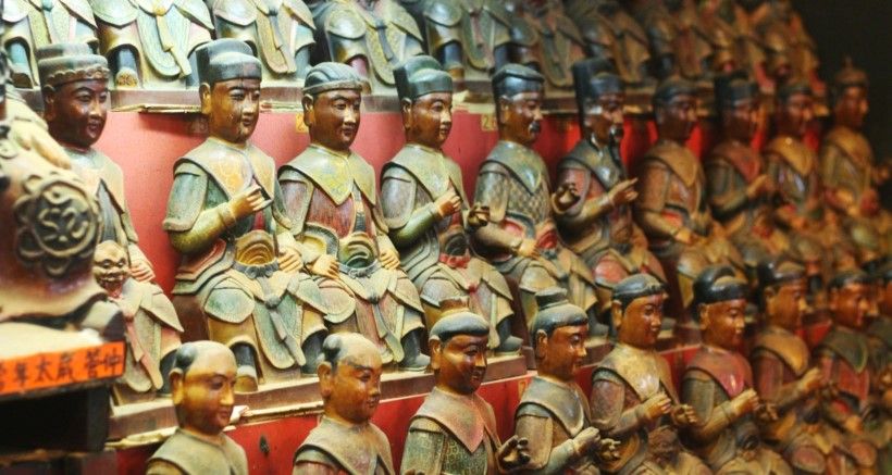 Like Pak Sing Temple, the heavy red and gold colours and abundant carvings inside the temple added to the mood of contemplation and meditation, though here, everything looked far more elaborate and resplendent. It was easy to picture scholars ardently praying here before taking their civil examinations. Going deeper and deeper into the temple, the silence became thicker and the smell of incense stronger. What struck me most about this temple was that there were plenty of people here praying, despite it being noon on a weekday.