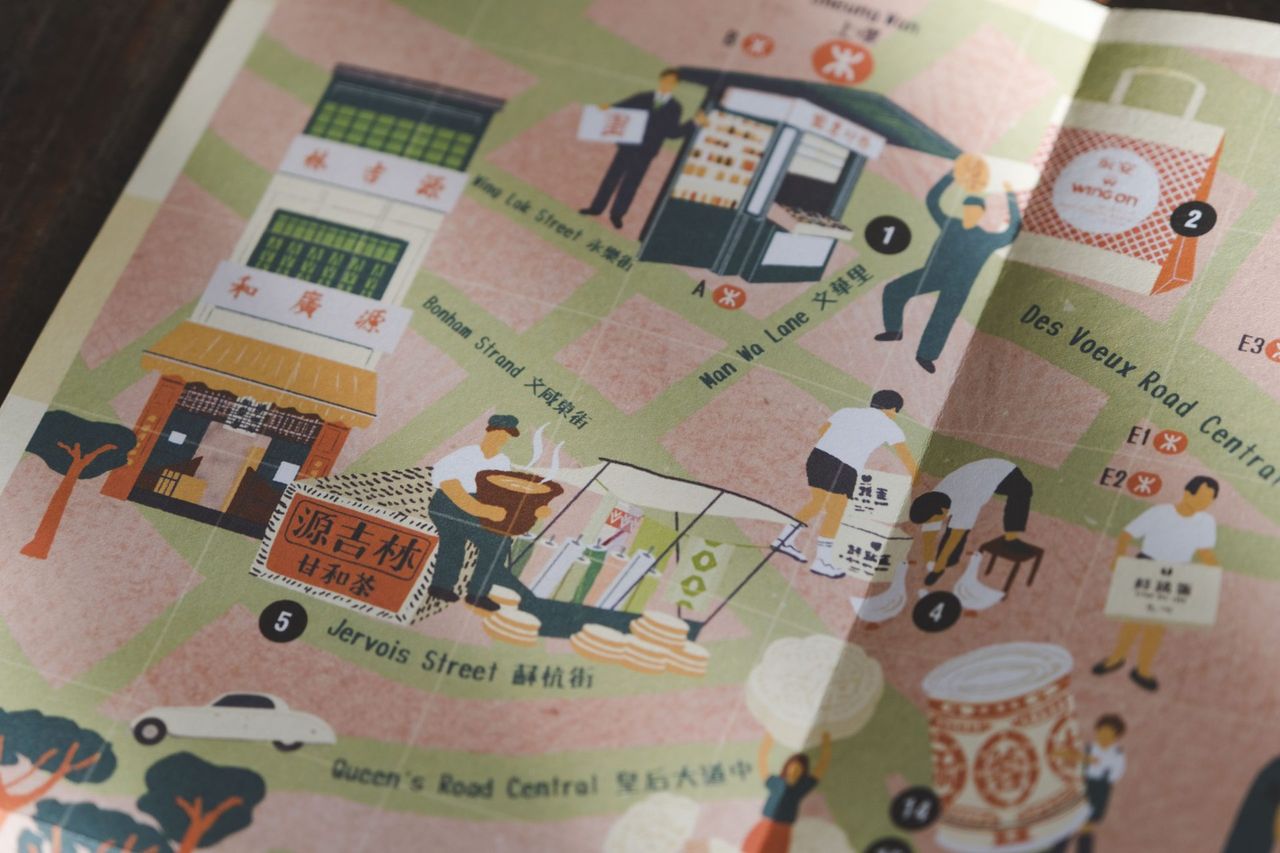 The illustrations are by Miss Quai. A designer and a lover of life, Quai won Hong Kong Young Design Talent and represented the city in international design projects. She believes cheerful design can lighten up a day and contribute to a better world. For this map she found inspiration in old photographs, postcards and personal memories of long-time residents.