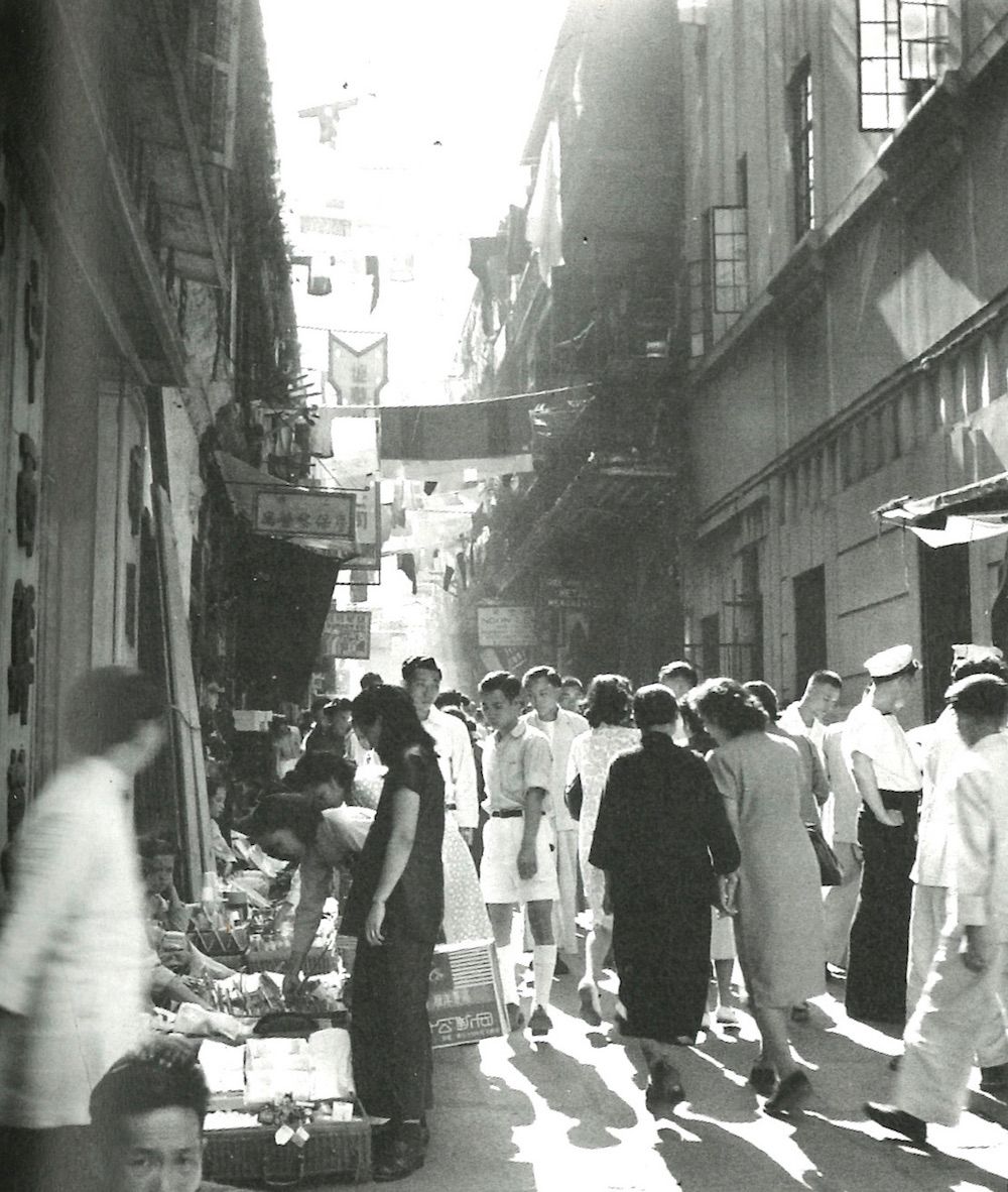 Right by the shoreline, Jervois Street was the place to go for fabrics. (Source: Hong Kong Archives).
