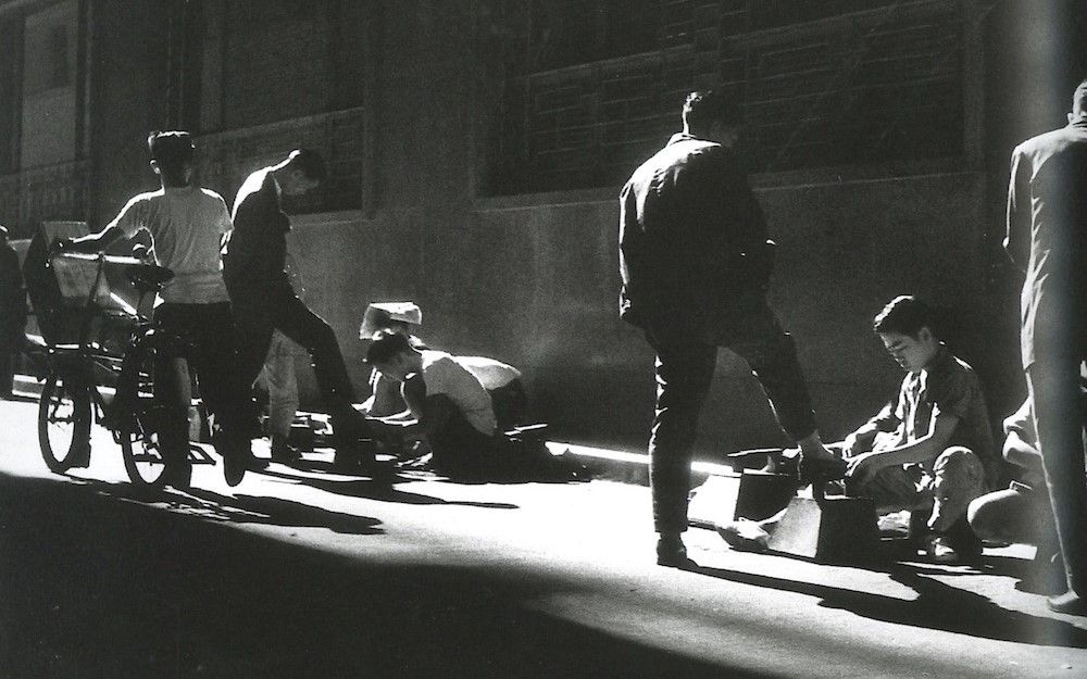 The shoe shiners in the little laneway next to Queen's Theatre. (Source: HK Archives and South China Morning Post)